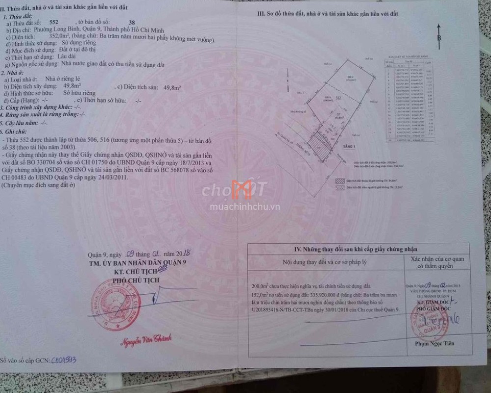 Bán đất mặt tiền diện tích 352m2 đường số 15 phường Long Bình của quận 9, ngay bến xe Miền Đông mới cực kỳ tiện đi lại. Đất có SHR chính chủ hoàn toàn an tâm. Miếng đất nhà này mình cần bán có diện tích tổng cộng 352m2, đất thổ cư mặt tiền rộng 8m, đường nhựa sạch sẽ, gần bệnh viện Ung Bướu, chợ và trường học. Trên đất hiện có 2 căn nhà, trong đó có 1 đang ở và 1 đang cho thuê. Sổ đỏ tên tôi mẹ mình sang tên nhanh chóng liên hệ TL. Giá 23 tỷ diện tích 352m2, kích thước bề ngang 8m và bề sâu 44m.